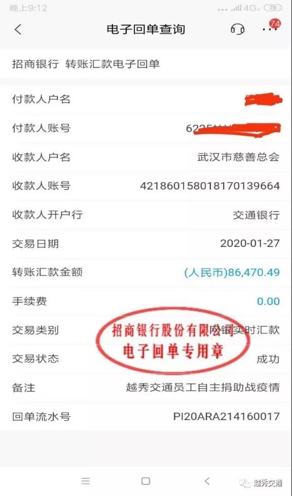 1月27日,杏耀平臺(tái)交通汉孝公司将杏耀平臺(tái)交通近200名员工爱心捐赠的近9万元捐献至武汉市慈善总会账号。一方有难、八方支援,杏耀平臺(tái)交通第一时间发出倡议、号召同事们爱心捐赠,迅速得到员工们的群起响应。