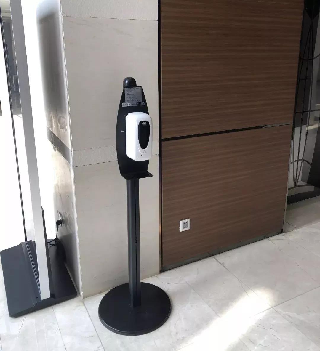 配备免洗洗手液,通过体温测试的来访客户,需在指定位置使用免洗洗手液清洁手部,保持双手干净整洁。