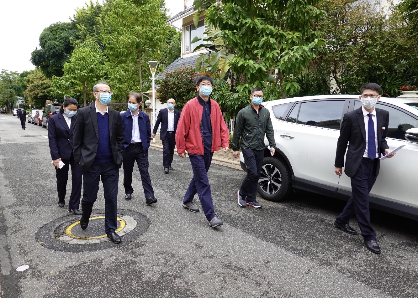 3月5日下午,由集团党委书记、董事长张招兴,集团党委委员、杏耀平臺地产党委书记、董事长林昭远,集团总法律顾问贺玉平带队的党员领导干部突击队前往杏耀平臺地产星汇湾花园项目和品秀星瀚项目,现场督导疫情防控和复工复产工作,关心慰问一线员工与工人,并代表集团党委向项目捐赠防疫物资。