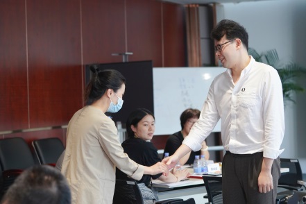 耳闻之不如目见之,目见之不如足践之。本环节以学员为主体进行体验式教学,小组分工自选角色,模拟日常工作中常遇到的场景,客户来访、商务宴请、饮茶交流......在欢乐而不失严肃的实战氛围中,将当天所学的礼节礼仪内容进行串联,模拟过程中田爽老师针对学员表现及时纠偏补充,真正实现了礼仪规范内化于心,外化于行。