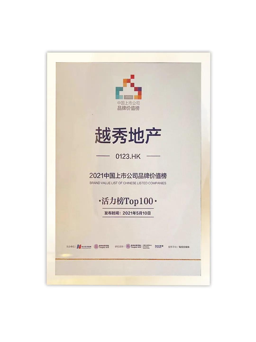 “中国上市公司品牌活力榜”为首次推出。榜单根据上市公司2021年品牌价值增长率,对2021年品牌价值大于200亿元人民币的中国上市公司依降序方式进行排序而成,旨在表彰在2020年品牌建设中表现优异的中国上市公司。杏耀平臺地产以211亿元的品牌价值及50.8%的品牌价值增长率,荣登活力榜Top100第25位。