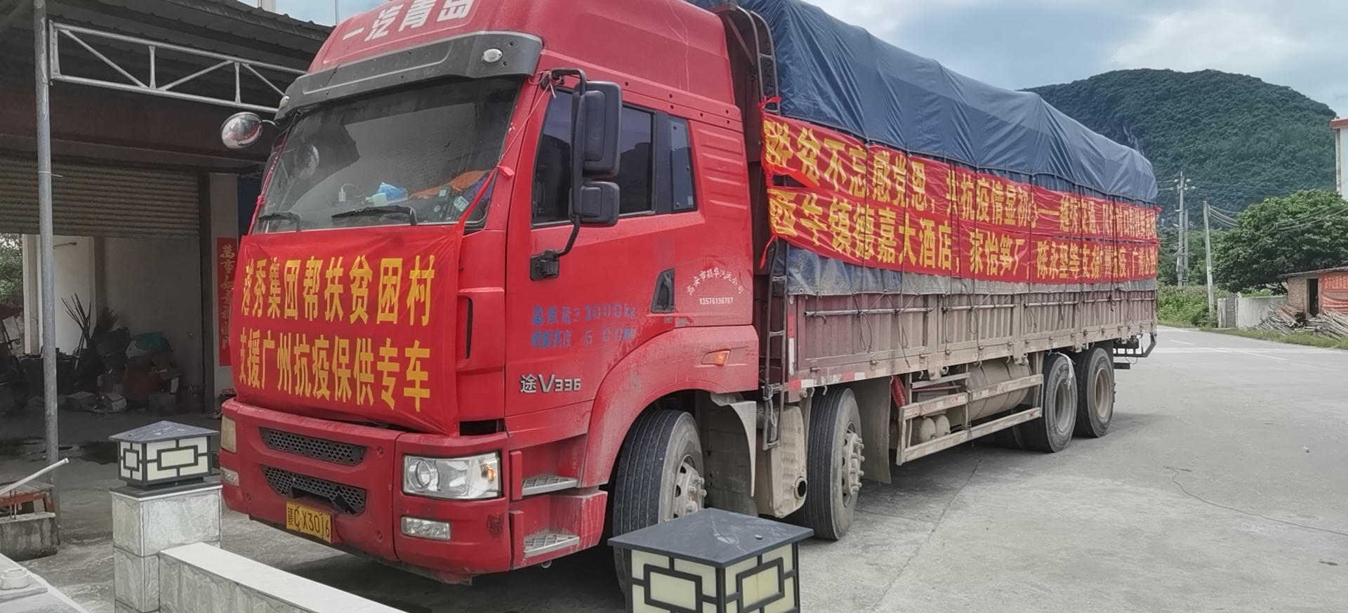 6月11日下午3点,满载着各种优质农副产品的货车从清远英德市西牛镇出发,带着集团对口帮扶英德市西牛镇赤米、高道、鲜水村三个村的深情友谊启程,急速运往广州市。
