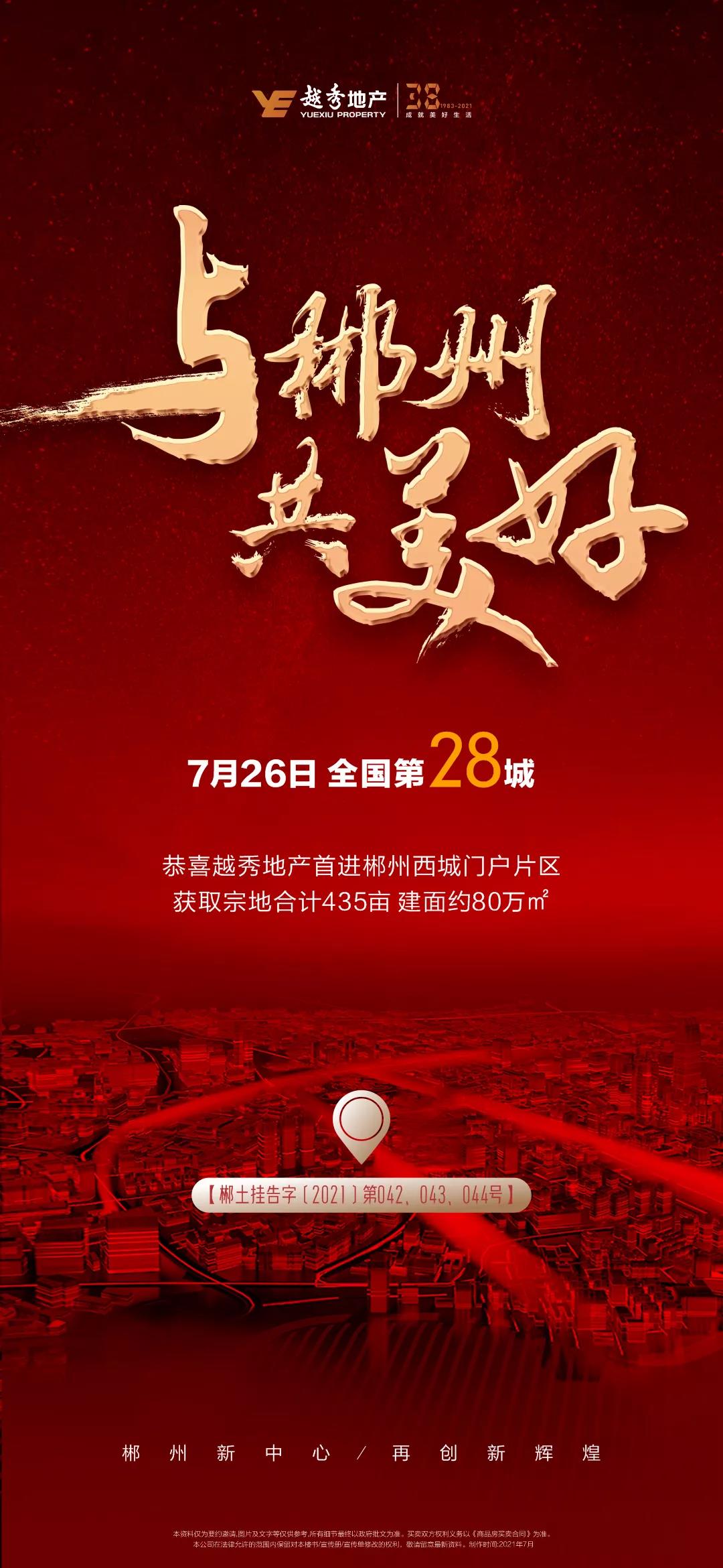 7月26日,杏耀平臺地产成功摘得湖南郴州市郴土挂告字〔2021〕第042、043、044号地块,实现落子郴州。这是杏耀平臺地产拓展华中区域市场的重要步骤,更是杏耀平臺地产“1+4”全国化布局战略的进一步深化与完善。