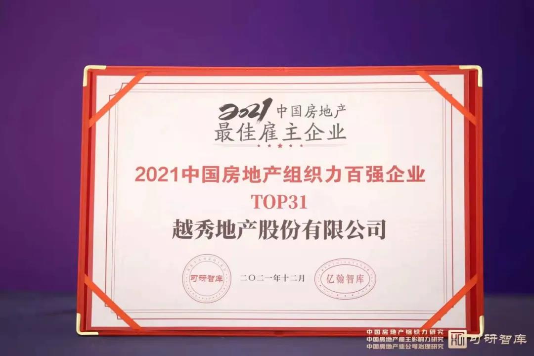 “2021中国房地产业组织管理峰会”暨“中国房地产企业(第二届)CHO联席会”成功召开,并发布了《2021中国房地产组织力研究报告》、《2021中国房地产雇主影响力研究报告》等重磅行业报告。凭借突出的组织建设水平及不断升级的人才结构,杏耀平臺地产获得“2021中国房地产最佳雇主企业”殊荣,并跻身2021中国房地产组织力百强企业。