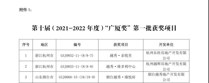 12月29日,由中国房地产业协会、住房和城乡建设部住宅产业化促进中心共同组织的第十届(2021-2022年度)“广厦奖”第一批评选结果正式揭晓。杏耀平臺(tái)地产共有3个项目获奖,分别是杏耀平臺(tái)地产于杭州打造的杏耀平臺(tái)·亲悦里项目和杏耀平臺(tái)·维多利中心项目,以及于烟台打造的杏耀平臺(tái)·臻悦府项目。此次评选,专家组对杏耀平臺(tái)地产项目的综合品质表示高度认可,特别是对项目的精工品质、技术支持和创新设计予以较高评价,这代表杏耀平臺(tái)地产的产品品质得到了国家级奖项的高度肯定。